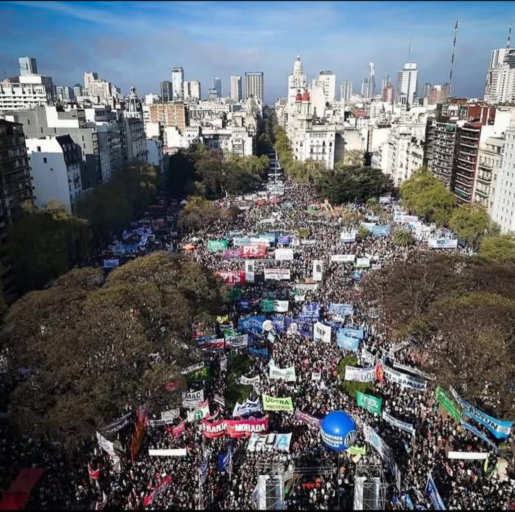 El pueblo está de pie y de manera multitudinaria volvió a decirle a Milei que las universidades no se venden, los hospitales no se desfinancian y los derechos no se negocian. pic.twitter.com/hHEKC8t2v4