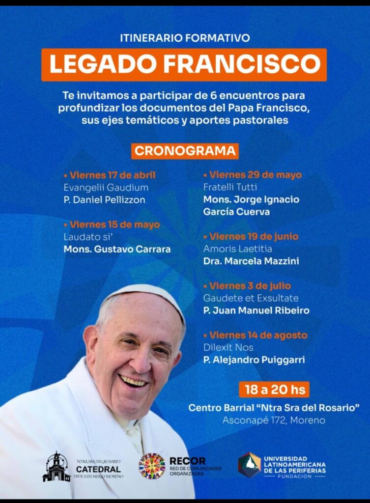 Seis encuentros para profundizar el «Legado de Francisco» en Moreno